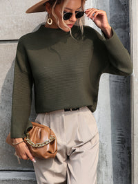 Effortlessly stylish and comfortable, this ribbed pullover sweater is the perfect addition to your wardrobe. Designed with a relaxed fit and mock neck, it offers both comfort and modern appeal. The drop shoulder design adds a touch of contemporary fashion to this versatile piece.