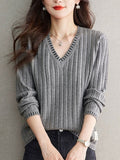 This V-neck sweater is ideal for creating a variety of looks. Dress it up with a skirt and heels for a polished ensemble, or pair it with jeans for a relaxed, everyday outfit. Its versatile design makes it perfect for transitioning between seasons, offering both comfort and style in any setting.