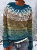 Crewneck Pullover Sweater for Women - Color Block - Image 1
